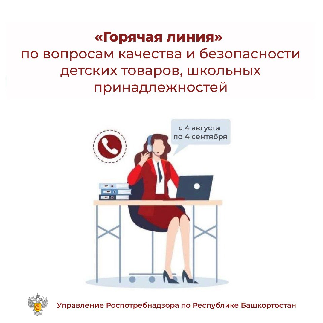 ☎️ С 4 августа по 4 сентября работает «горячая линия» по вопросам качества и безопасности детских товаров, школьных принадлежностей. ☀️Специалисты Управления Роспотребнадзора и Центра гигиены и эпидемиологии ответят жителям республики на все интересующие вопросы по телефону 8-800-77-50-170 понедельник-четверг с 10.00 до 17.00, пятница с 10.00 до 15.45, перерыв на обед с 12.00 до 12.45.